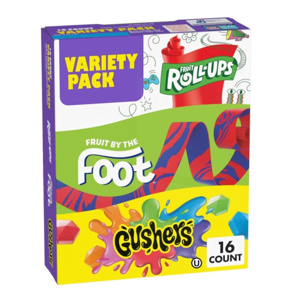 Fruit by the Foot, Fruit Roll-Ups, Gushers, Variety Pack, 16 Unidades