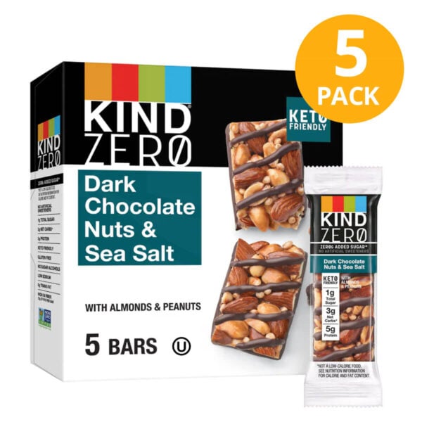 Kind ZERO Added Sugar Bars, Dark Chocolate Nuts and Sea Salt (Pack de 5)