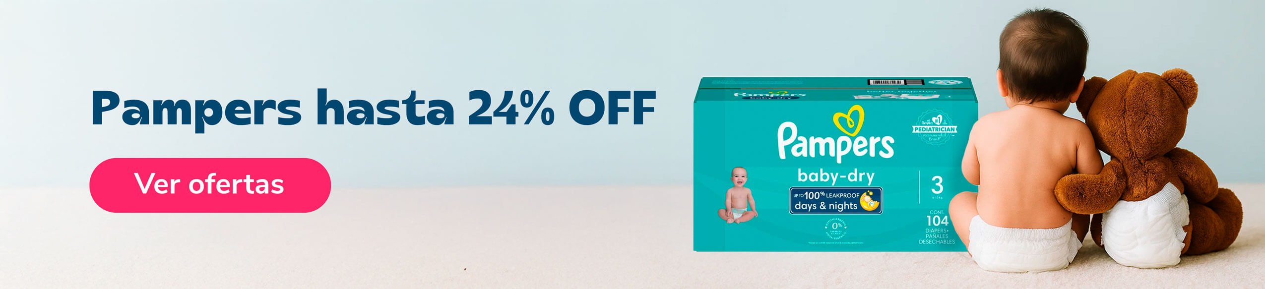 Pampers Baby Dry Talla 3, 104 Pañales