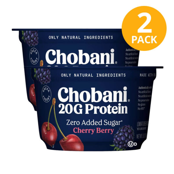Yogurt Chobani 20g Protein Zero Sugar, Cherry Berry, Greek Yogurt, 6.7 OZ (Pack de 2)
