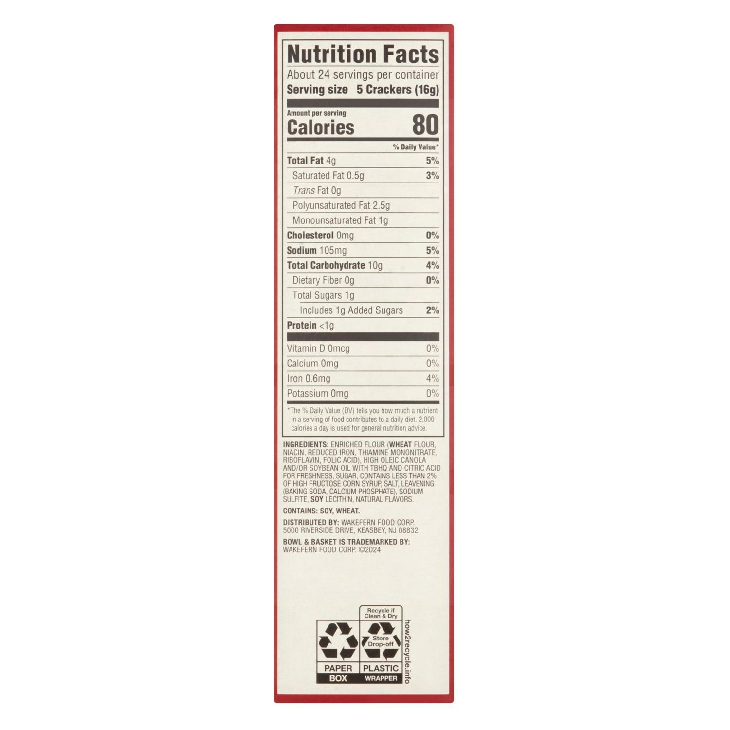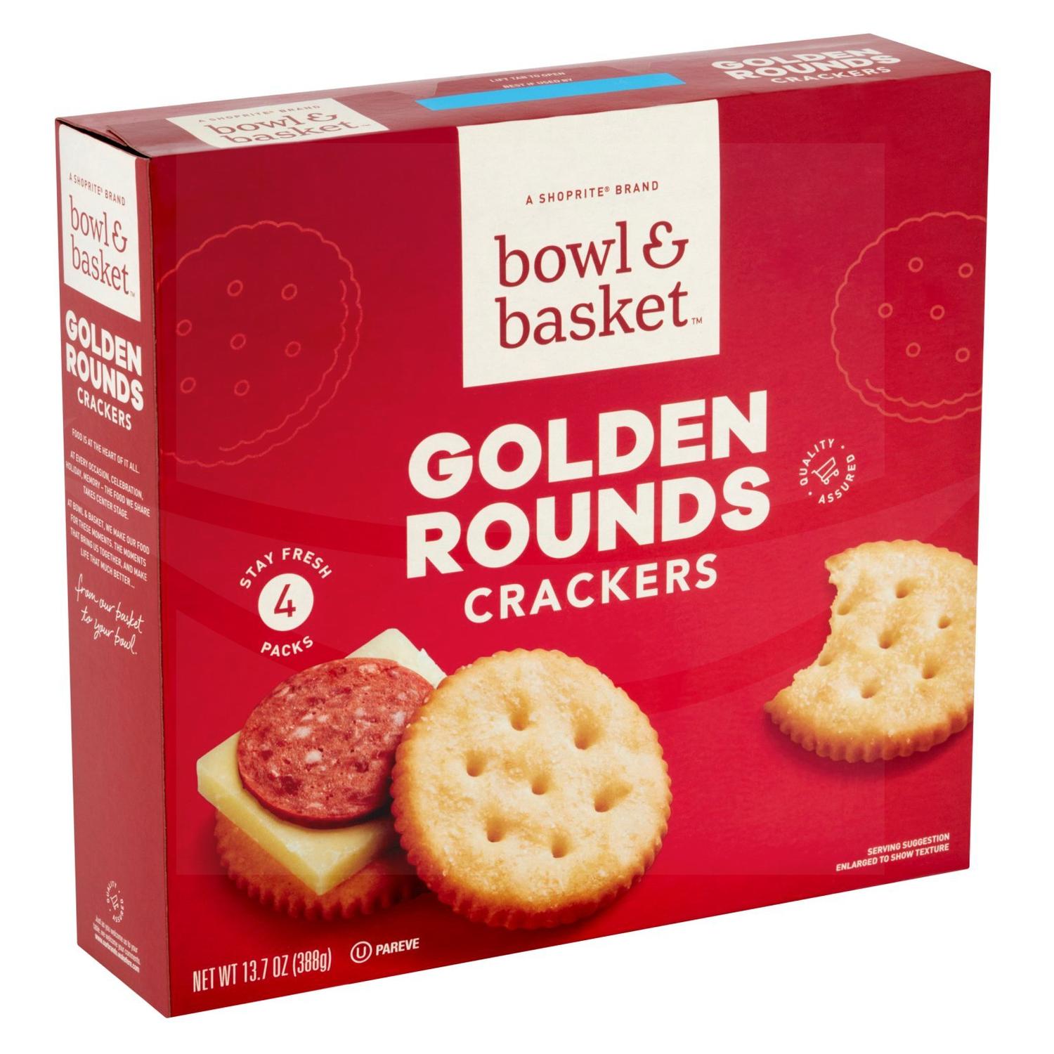 Bowl & Basket Golden Rounds Crackers, 13.7 oz – Crackers / Galletas redondas doradas. Galletas saladas crujientes estilo buttery rounds. Perfectas para untar con queso, dips o como snack. Textura ligera y crujiente. 13.7 OZ (388g)