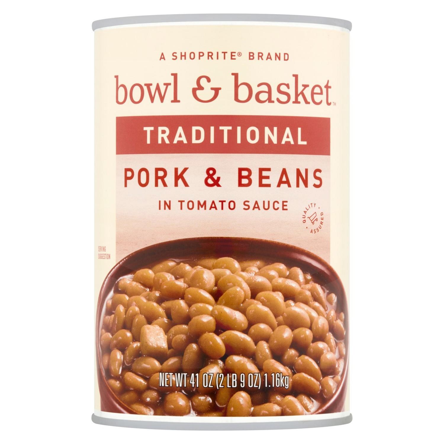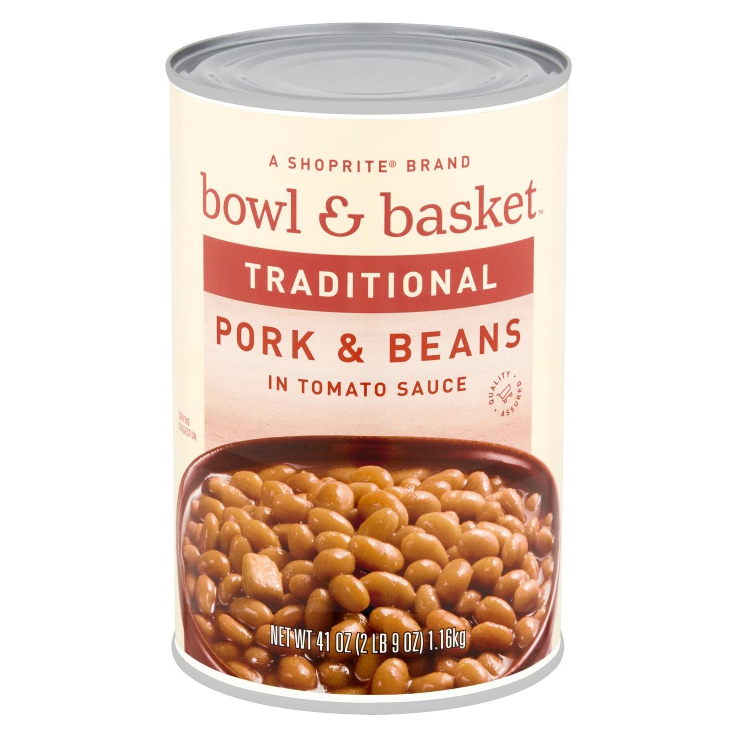 Bowl & Basket Pork & Beans in Tomato Sauce, 15 oz – Frijoles con cerdo en salsa de tomate. Platillo listo para calentar y servir, sabor casero americano. 15 OZ (425g)
