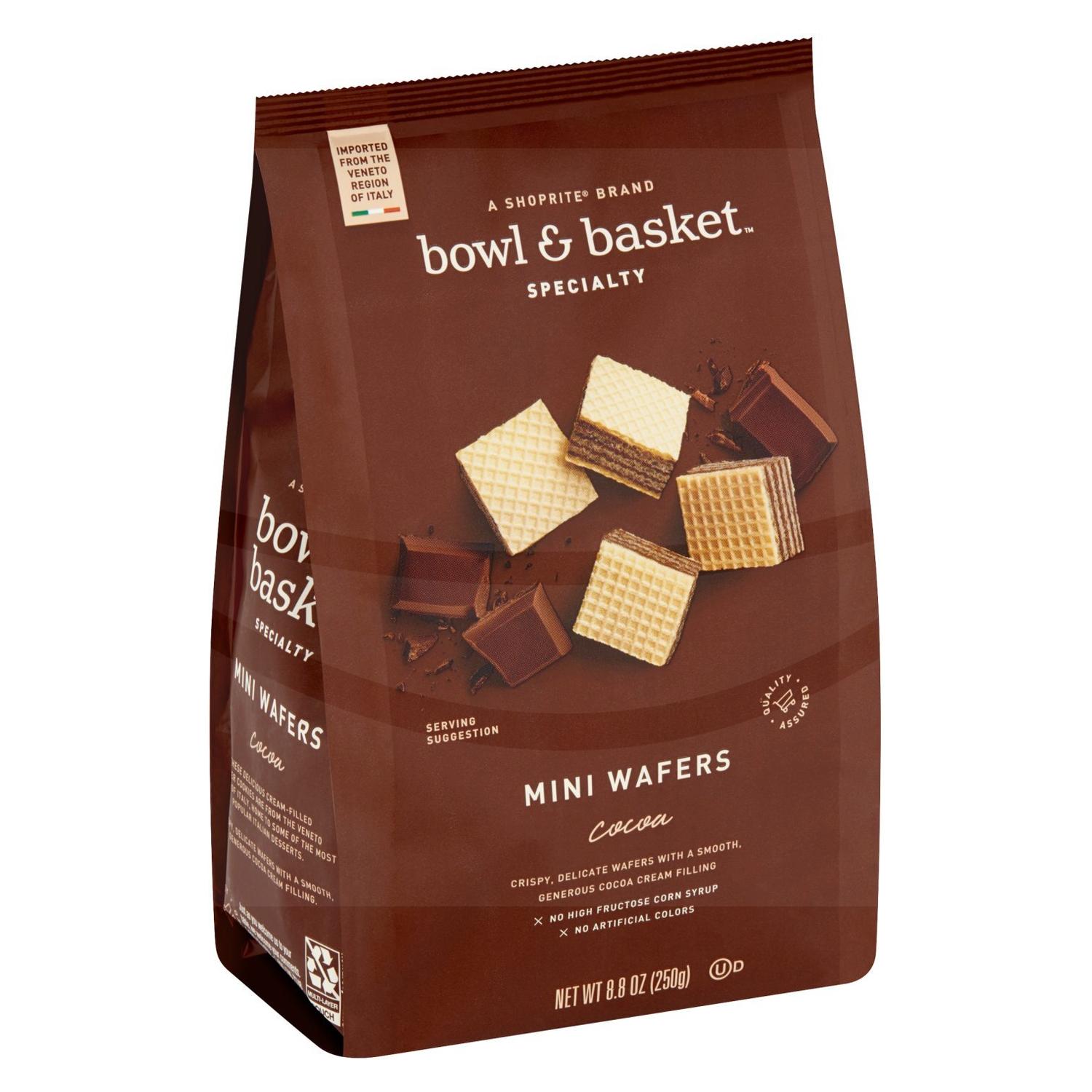 Bowl & Basket Cocoa Mini Wafers, 8.8 oz – Mini obleas sabor cacao. Galletas ligeras y crujientes con capas de crema de chocolate. 8.8 OZ (250g)