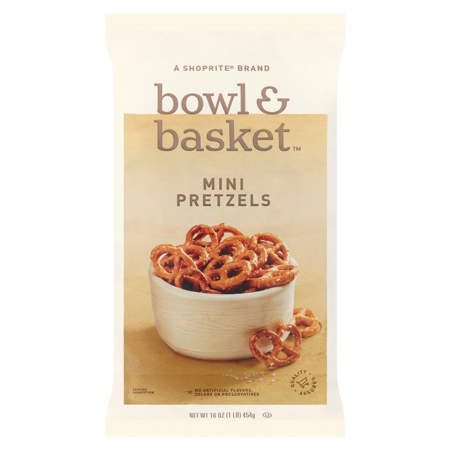 Bowl & Basket Mini Twist Pretzels, 16 oz – Pretzels mini trenzados horneados. Snack crujiente y salado, bajo en grasa. Sin saborizantes artificiales. 16 OZ (454g)