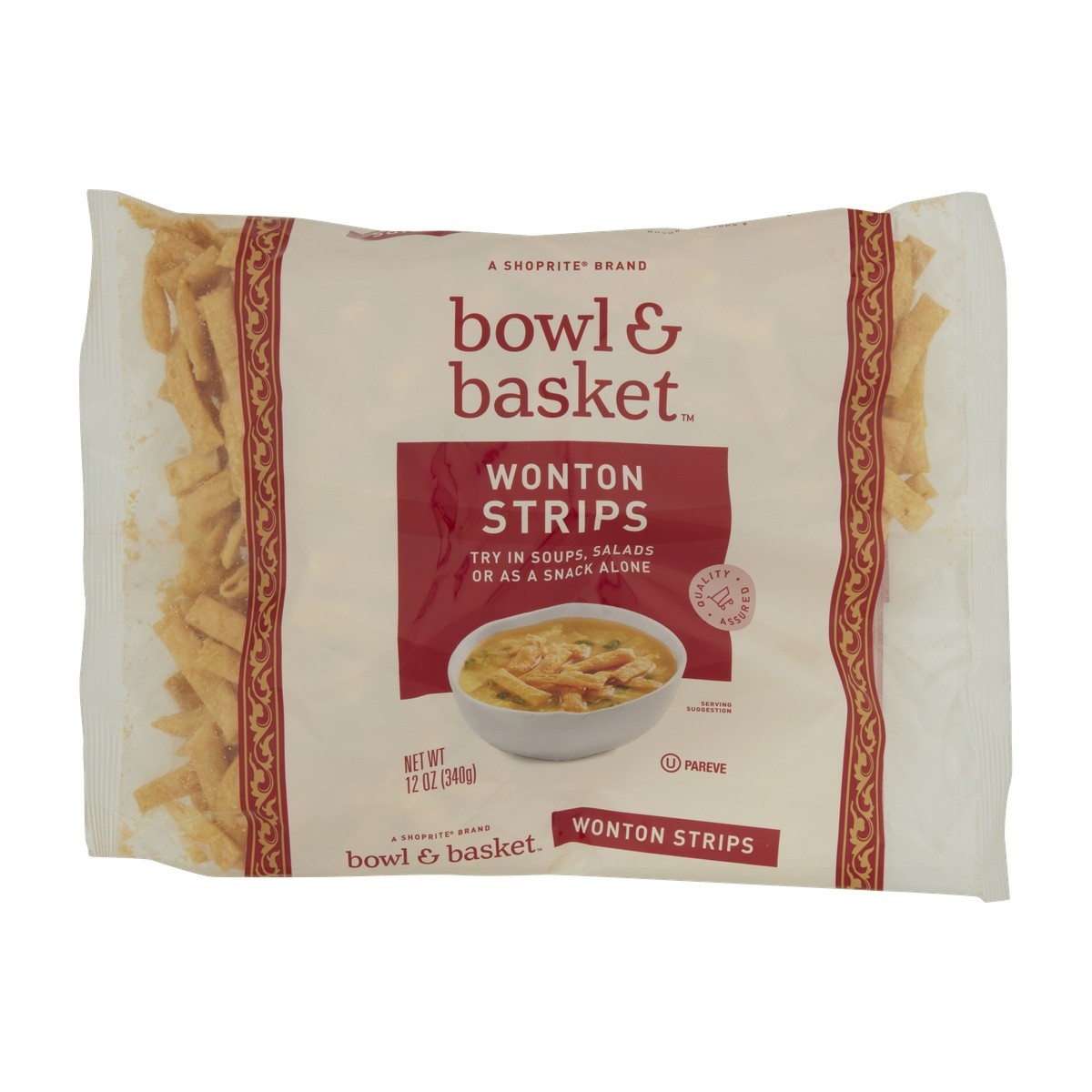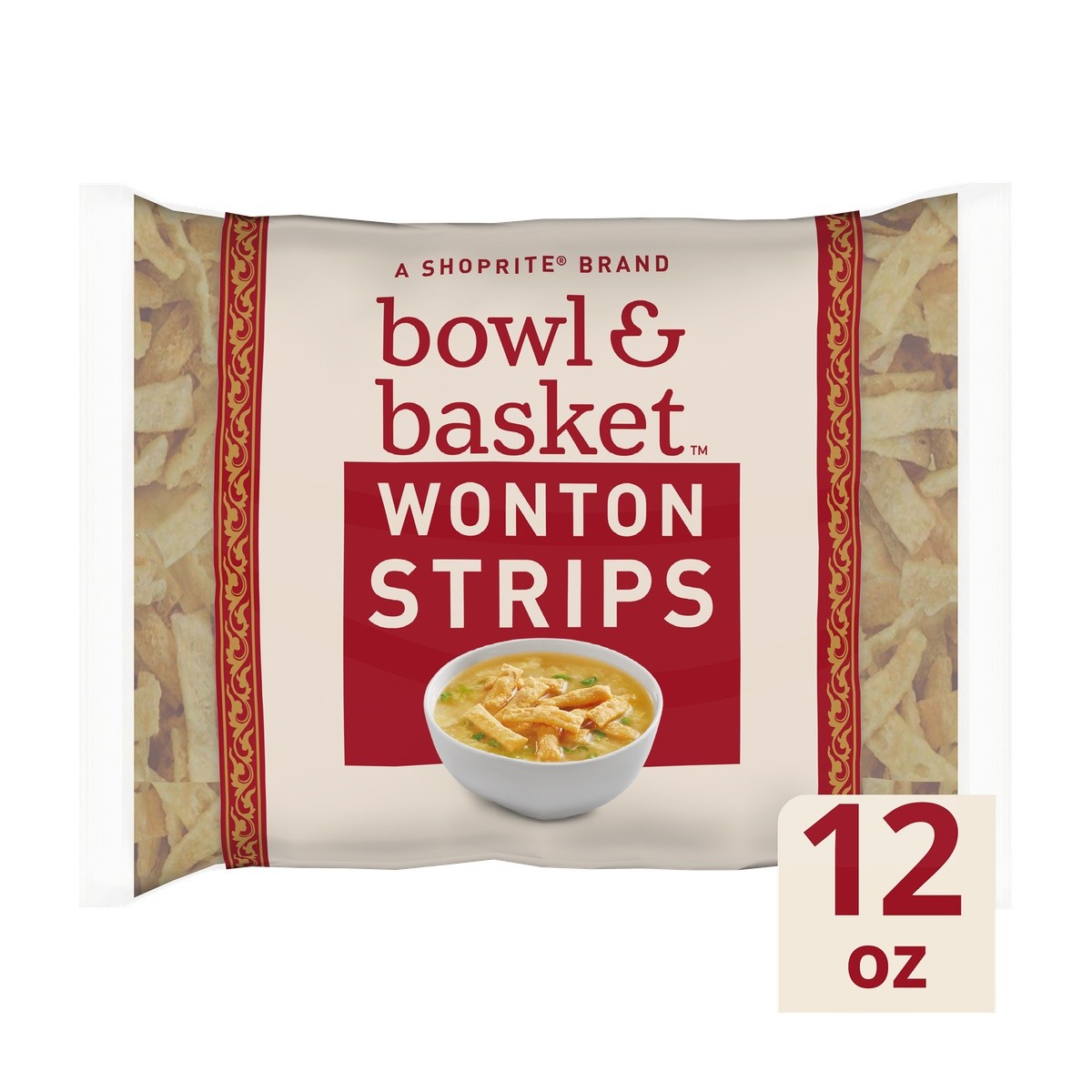 Tiras de wonton crujientes. Cortadas en tiras para sopas asiáticas. Añaden textura crocante. También para ensaladas tipo oriental chicken salad.