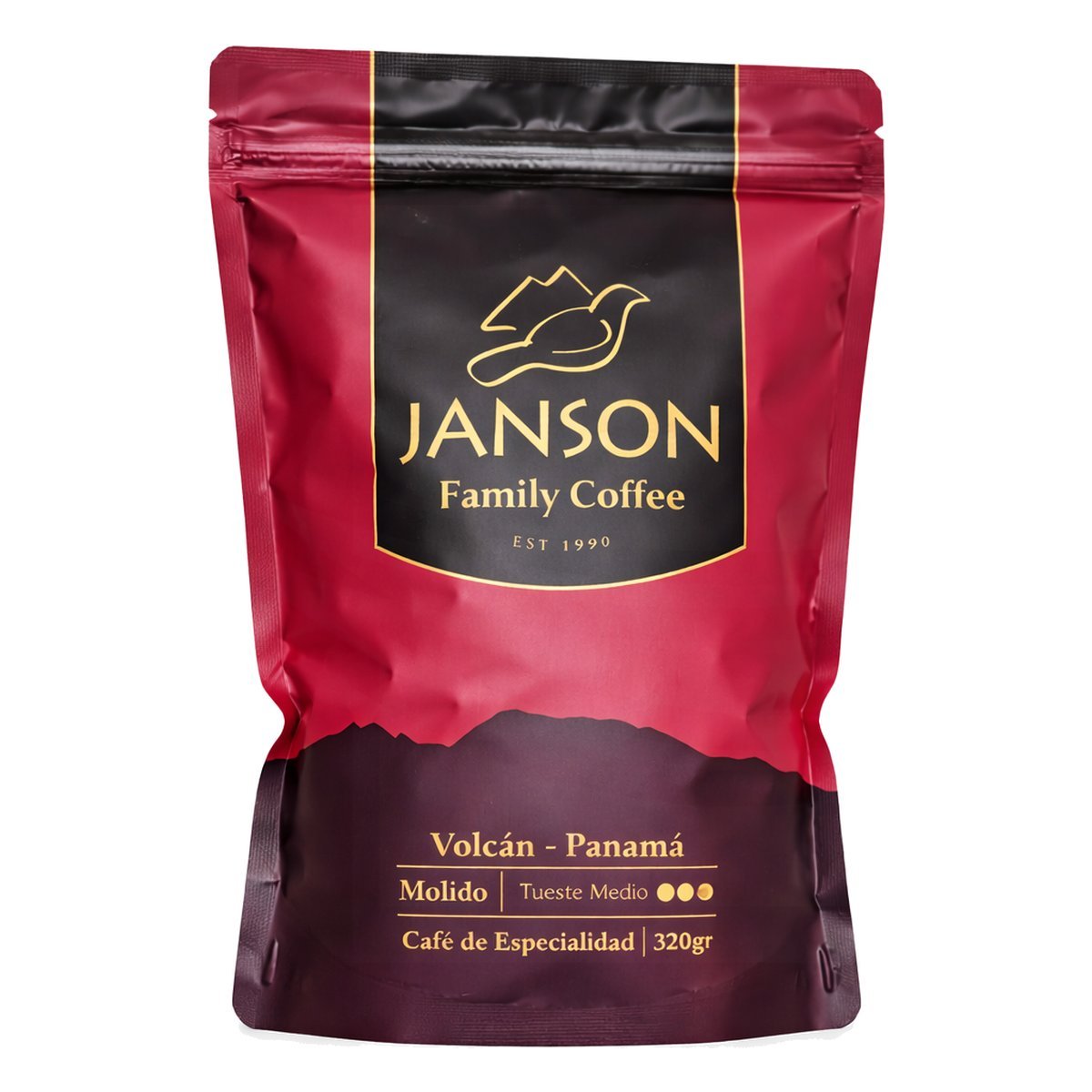 Café de especialidad molido 100% arábica, cultivado en Volcán, Panamá. Tueste medio. (Janson Family Coffee Medium Roast Ground Coffee)