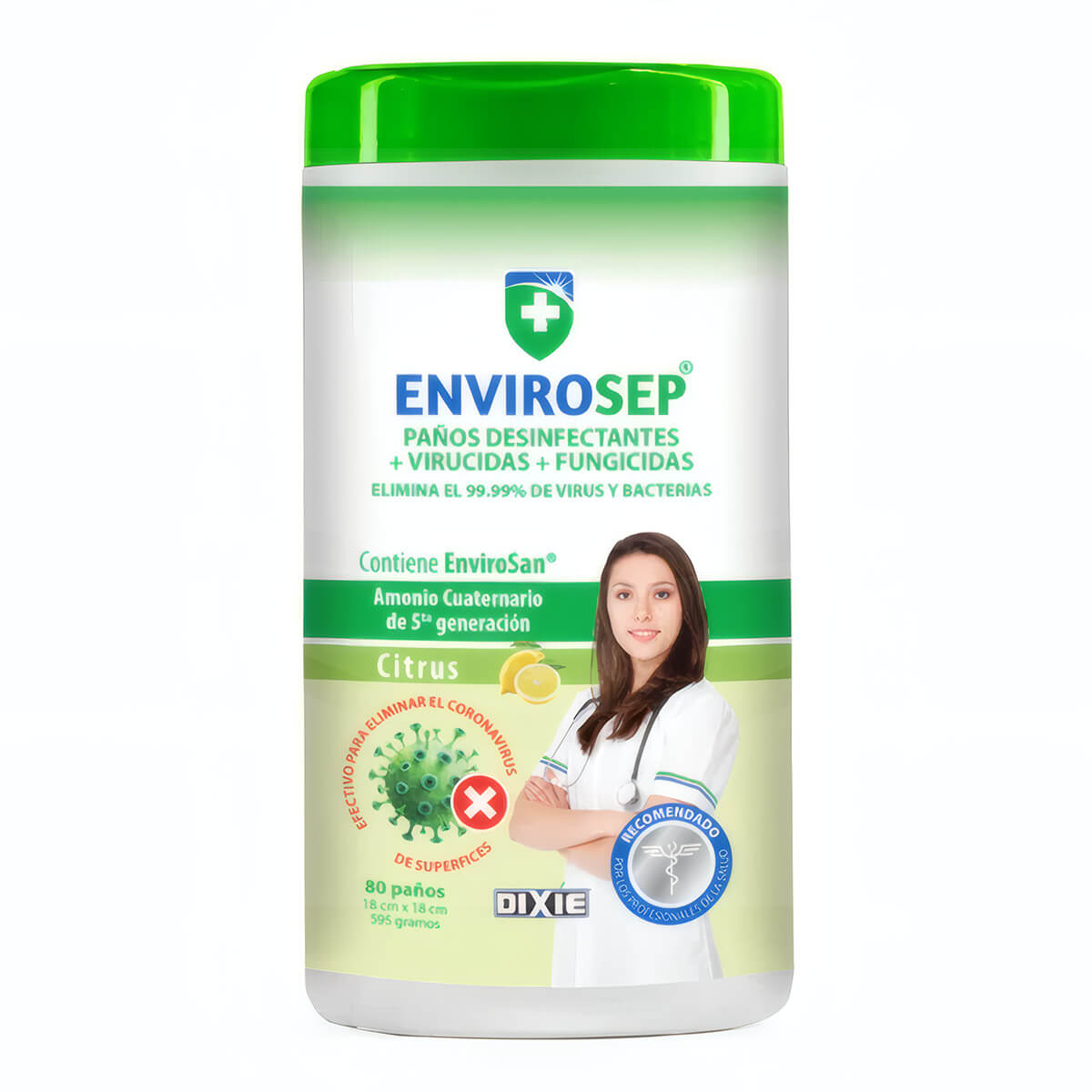 Envirosep Wipes Citrus, 80 Paños Desinfectantes
