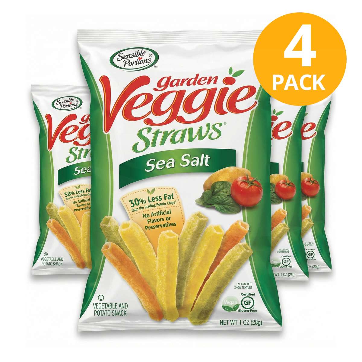 Garden Veggie Straws Sea Salt, Sensible Portions 1 OZ (Pack de 4)