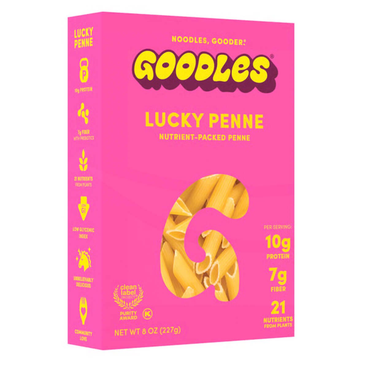 Pasta tipo penne nutritiva y deliciosa, enriquecida con proteína y fibra, hecha con ingredientes de origen vegetal y 21 nutrientes para una opción más saludable sin sacrificar sabor.