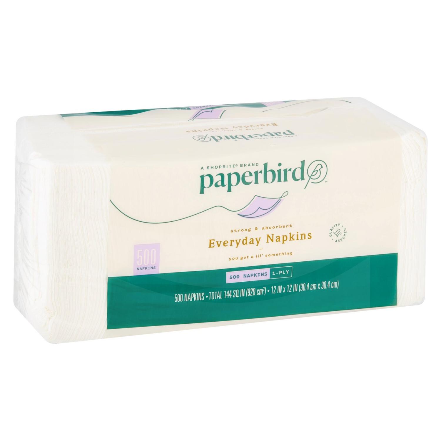 Paperbird White Napkins, 500 count – Servilletas blancas económicas. 500 unidades, 1 capa, ideales para uso diario en casa o negocio.