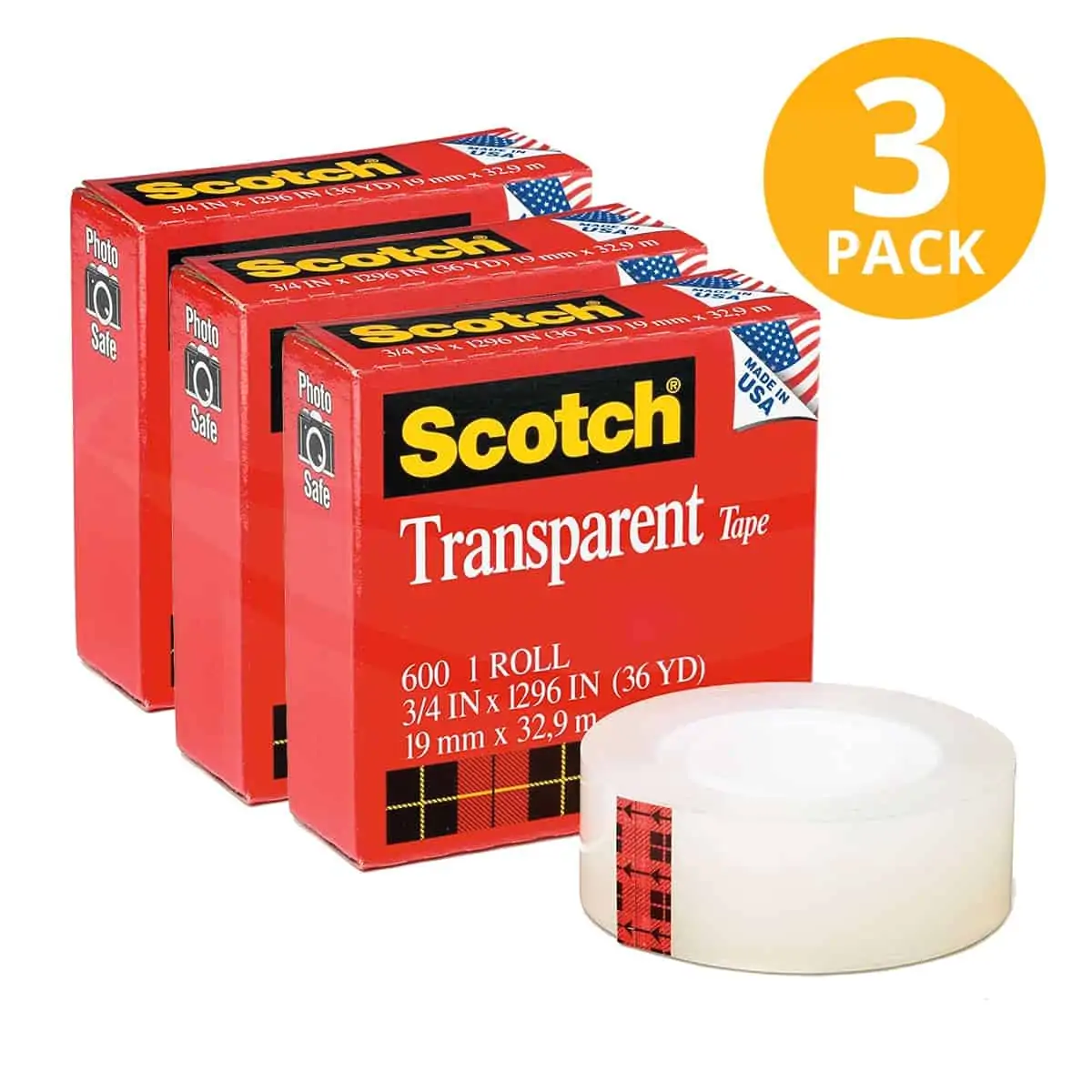 Cinta Adhesiva Transparente Delgada, Scotch, 3/4″ (Pack de 3)