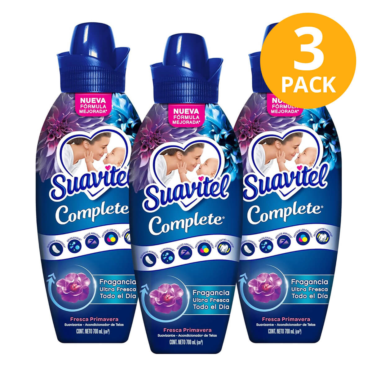 Acompaña a tu familia y ayúdalos a revivir esos momentos fantásticos con el aroma del suavizante de telas suavitel complete fresca primavera; cada vez que usen una prenda limpia será un verdadero placer. disfruta su presentación de 700 mililitros. su consistencia penetrará mejor en cada fibra y desde ahí ayudará a que la suavidad de los hilos sea más intensa. además, reduce la aparición drástica de arrugas: réstale tiempo y esfuerzo al planchado. no requiere enjuague después de su uso debido a que corta la espuma sin dejar manchas.
