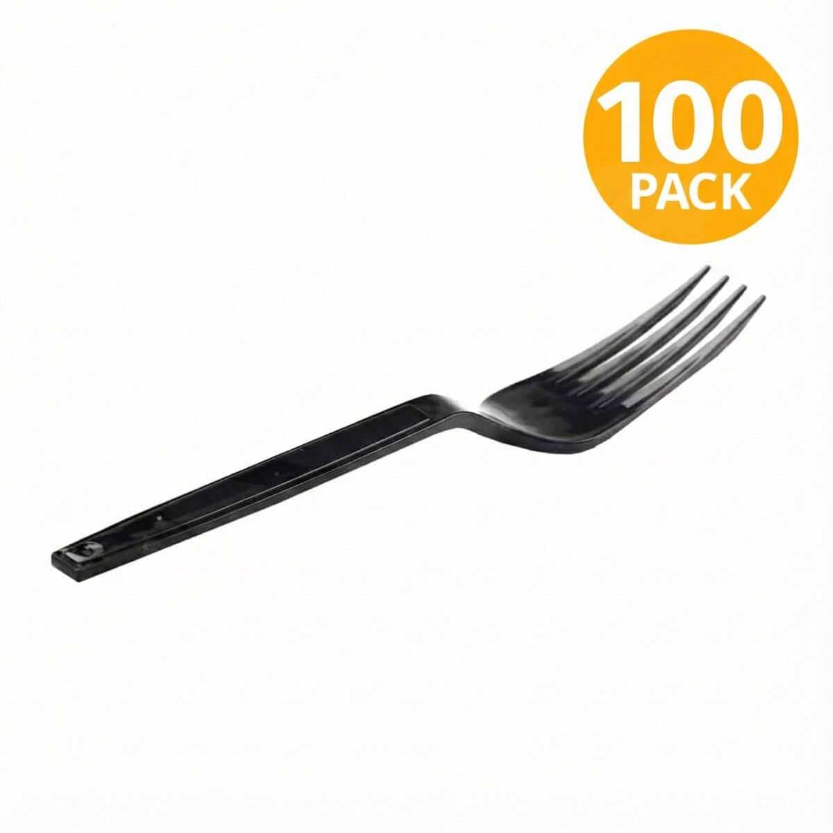 Tenedores Negros Plásticos, Hot Pack, 100 Unidades (Pack de 2 x 50)